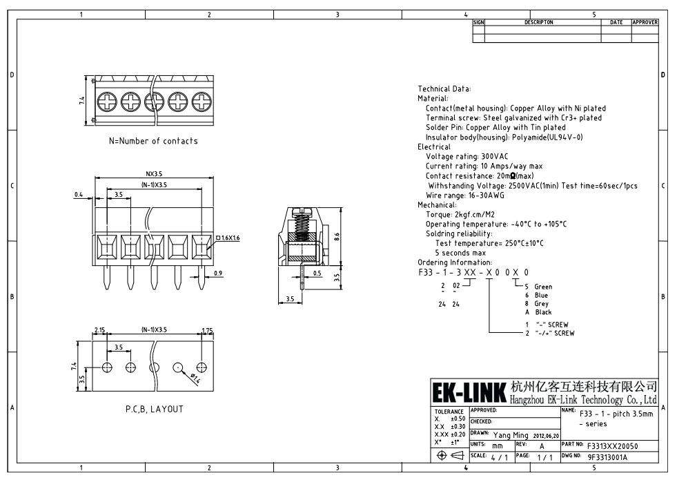 Hangzhou EK-Link Technology Co.,Ltd was devoted to one-stop services from the products design, research and development, production and sale of various connectors, like PCB fixed type terminal block,p