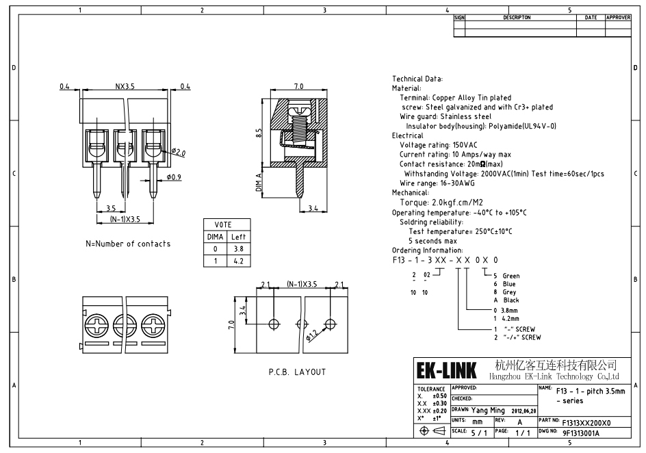 Hangzhou EK-Link Technology Co.,Ltd was devoted to one-stop services from the products design, research and development, production and sale of various connectors, like PCB fixed type terminal block,p
