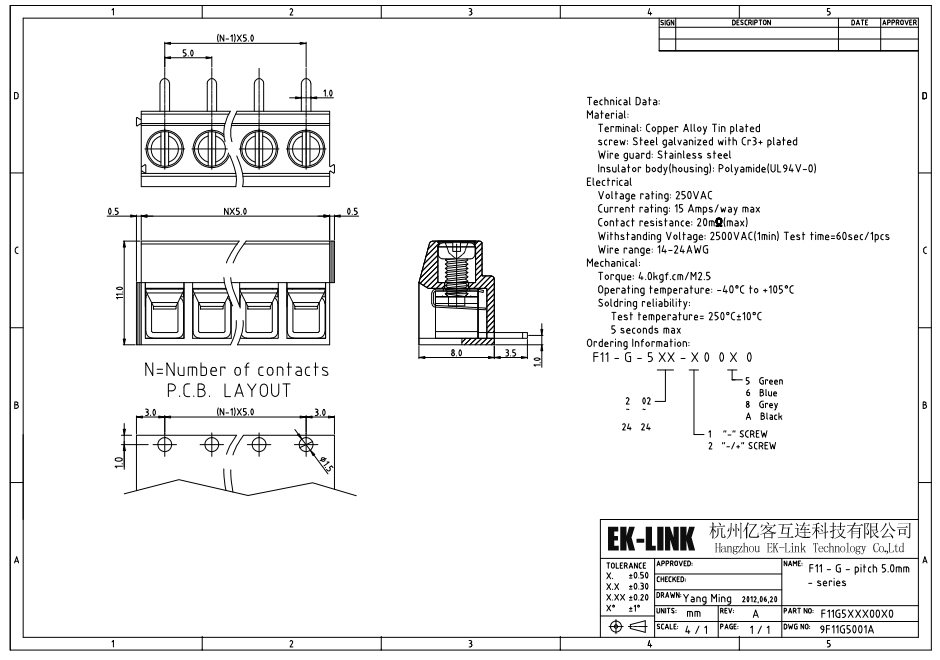 Hangzhou EK-Link Technology Co.,Ltd was devoted to one-stop services from the products design, research and development, production and sale of various connectors, like PCB fixed type terminal block,p