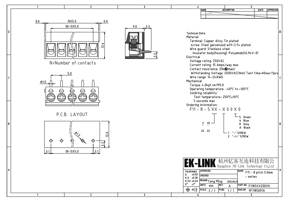 Hangzhou EK-Link Technology Co.,Ltd was devoted to one-stop services from the products design, research and development, production and sale of various connectors, like PCB fixed type terminal block,p