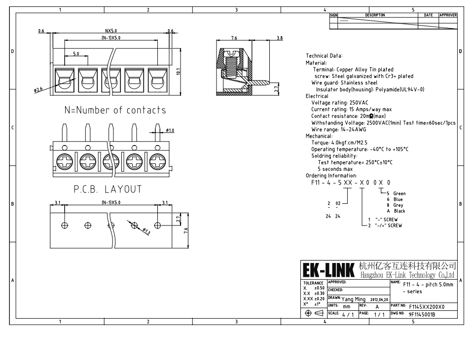 Hangzhou EK-Link Technology Co.,Ltd was devoted to one-stop services from the products design, research and development, production and sale of various connectors, like PCB fixed type terminal block,p