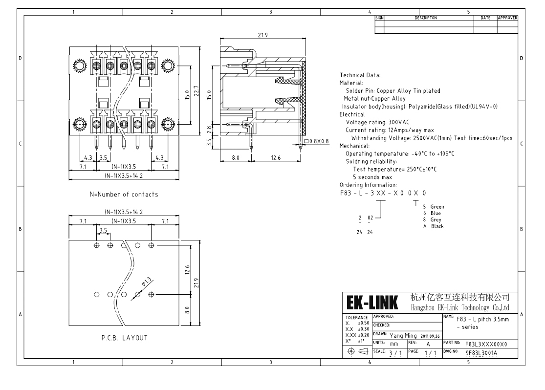 Hangzhou EK-Link Technology Co.,Ltd was devoted to one-stop services from the products design, research and development, production and sale of various connectors, like PCB fixed type terminal block,p